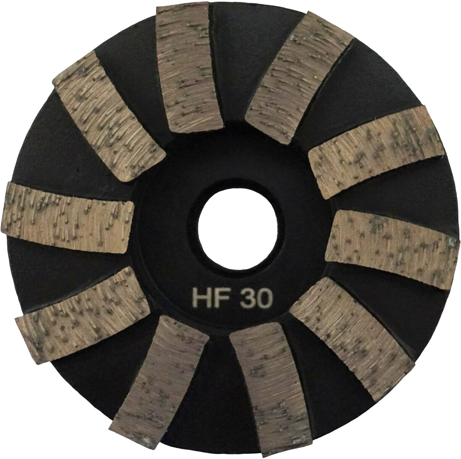 Small diameter tool for working in tight spaces. Curved segments optimal for the removal of concrete and other cementitious substrates. M14 thread attaches directly to the grinder spindle with no additional locking pieces.