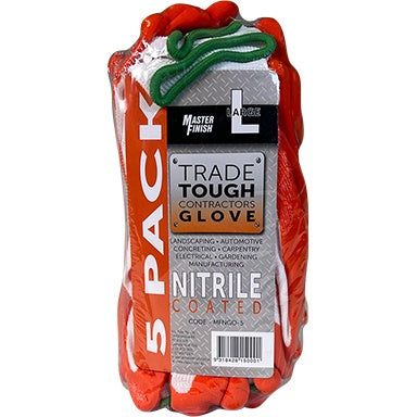 Masterfinish trade-tough contractors gloves are nitrile coated and perfect for landscaping, automotive work, concreting, carpentry, electrical work, gardening and manufacturing.