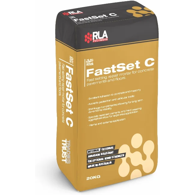 Fastset C is a pre-packed cementitious mortar specifically formulated for the quick and reliable repair of damaged concrete pavements and industrial floors. The specially selected cements and hard wearing aggregates contained in Fastset C allows the application of large areas with exceptional adhesion to concrete and masonry materials with negligible shrinkage. Fastset C may be used as a trafficable topping for existing concrete surfaces.