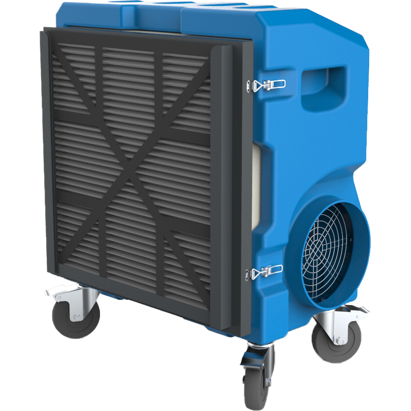 Powerful HEPA-fitted negative air scrubber for industrial air cleaning. Rate of air flow is sufficient to clean a warehouse area of approximately 600 m2 per machine. Warning alarm will sound when filter is blocked. Wide prefilter with OSHA-compliant H13 HEPA filter. 254 mm / 10" outlet for attaching an extraction hose.